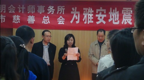 會上陳明集團董事長陳雪琴同志做了深情的講話,并帶頭捐款1000元,同時代表單位捐款5000元,在她的領導下,各公司總經理、部門經理、全體員工紛紛慷慨解囊,積極踴躍的捐款,"50元、100元、200元、300元、500元…",大家用實際行動表達著對災區(qū)人民的關愛,現場在《愛的奉獻》的歌聲中顯得異常感人,當日共籌集捐款11000元。