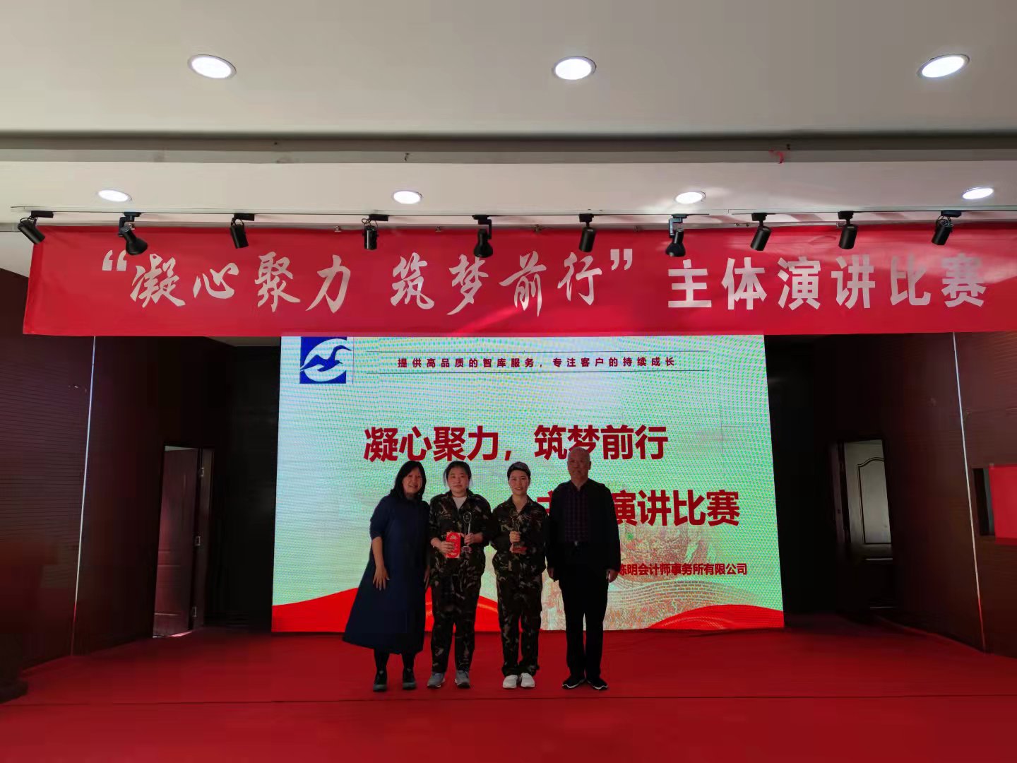 頒獎(jiǎng)儀式上,陳所長(zhǎng)與張局長(zhǎng)對(duì)選手們的精彩表現(xiàn)給予充分肯定,并要求公司全體人員要進(jìn)一步增強(qiáng)陳明會(huì)計(jì)事務(wù)所的品牌意識(shí)、質(zhì)量意識(shí)、服務(wù)意識(shí),叫響“智庫(kù)服務(wù),專(zhuān)注成長(zhǎng)”的口號(hào),提供高品質(zhì)的智庫(kù)服務(wù),專(zhuān)注客戶(hù)的持續(xù)成長(zhǎng)。