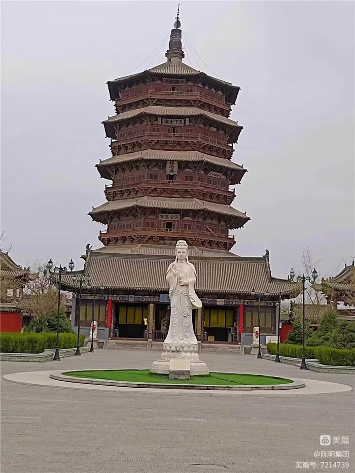 應縣木塔外觀為五層,而實際為九層。每兩層之間都設有一個暗層。這個暗層從外看是裝飾性很強的斗拱平座結構,從內看卻是堅固剛強的結構層,建筑處理極為巧妙。應縣木塔與意大利比薩斜塔、巴黎埃菲爾鐵塔并稱“世界三大奇塔”。